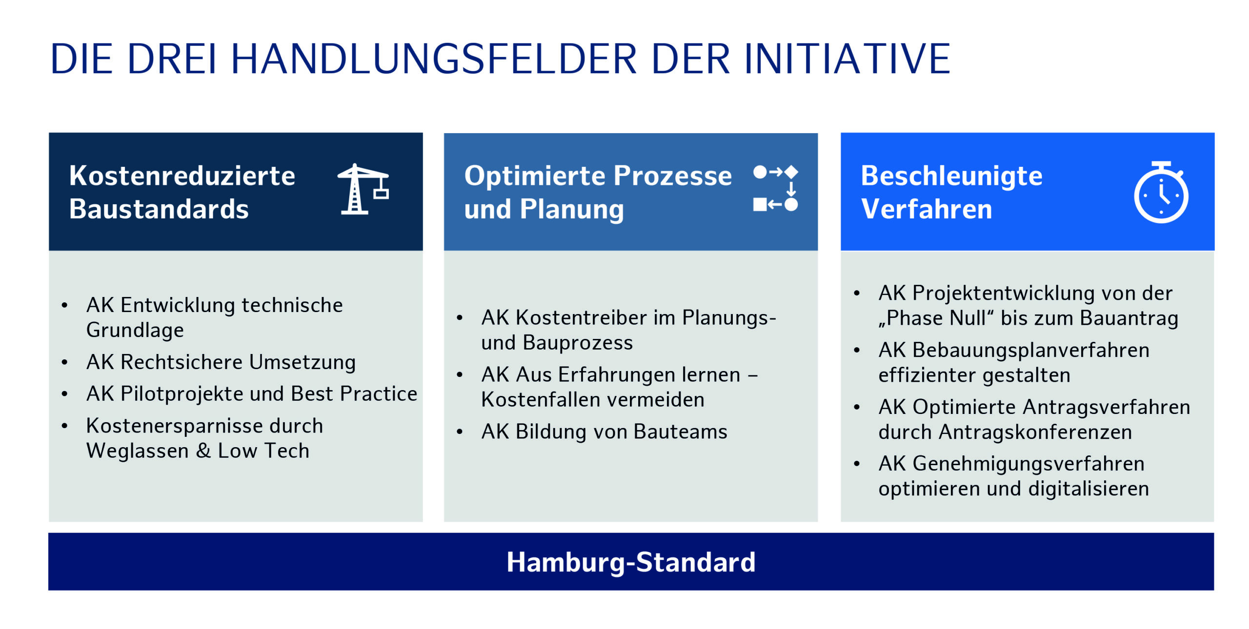 Abbildung 2: Handlungsfelder des Hamburger Baustandards (Auszug aus Präsentation Michael Munske, Tiroler Bautag 2026, Seite 9)