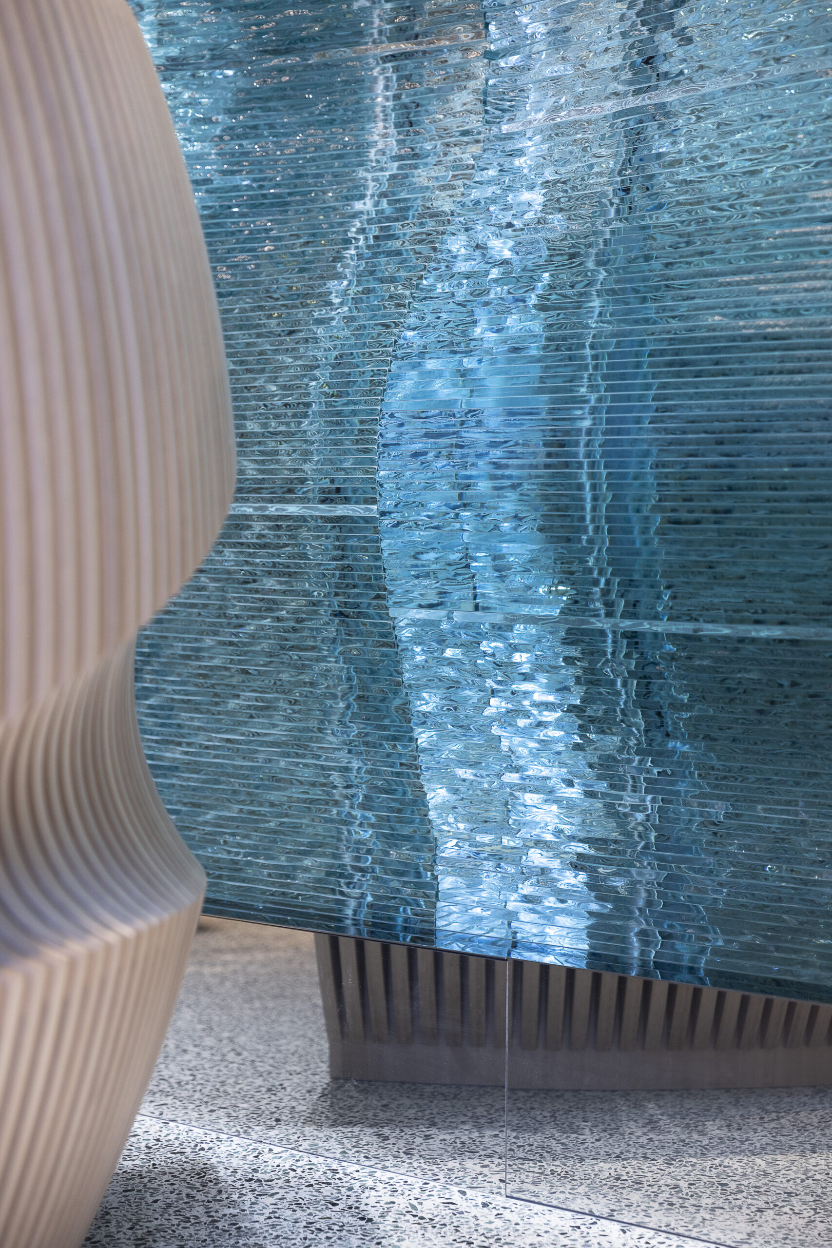 Auf diese Weise möchte man dem unterirdischen Wellnessbereich nicht nur eine starke, materielle Präsenz verleihen, sondern ihm gleichzeitig eine entspannte, ruhige Grundstimmung angedeihen lassen. Das Projekt steht exemplarisch für Lasvits kontinuierlichem Bestreben, Räume mit handgefertigtem Glas neu zu gestalten. Ziel ist es, nicht nur historische Orte zu bewahren, sondern auch neue kulturelle Wahrzeichen zu schaffen.