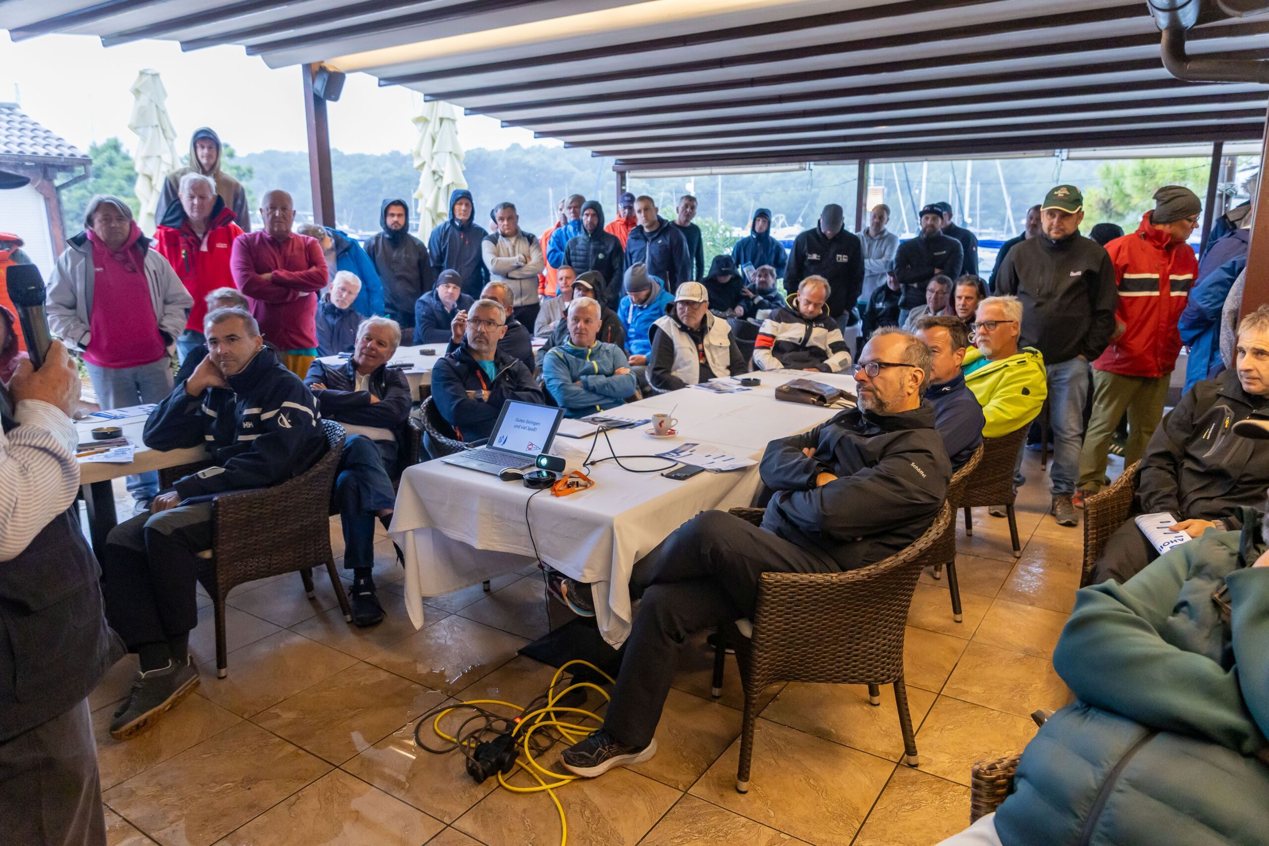 Auch wenn der erste Tag von Starkregen und Sturm geprägt war und ein Auslaufen der Boote unmöglich machte, tat dies der großartigen Stimmung und Feierlaune keinen Abbruch.