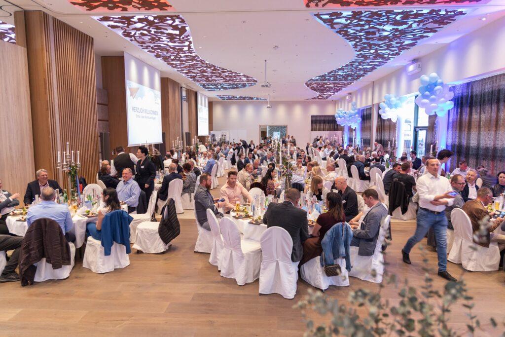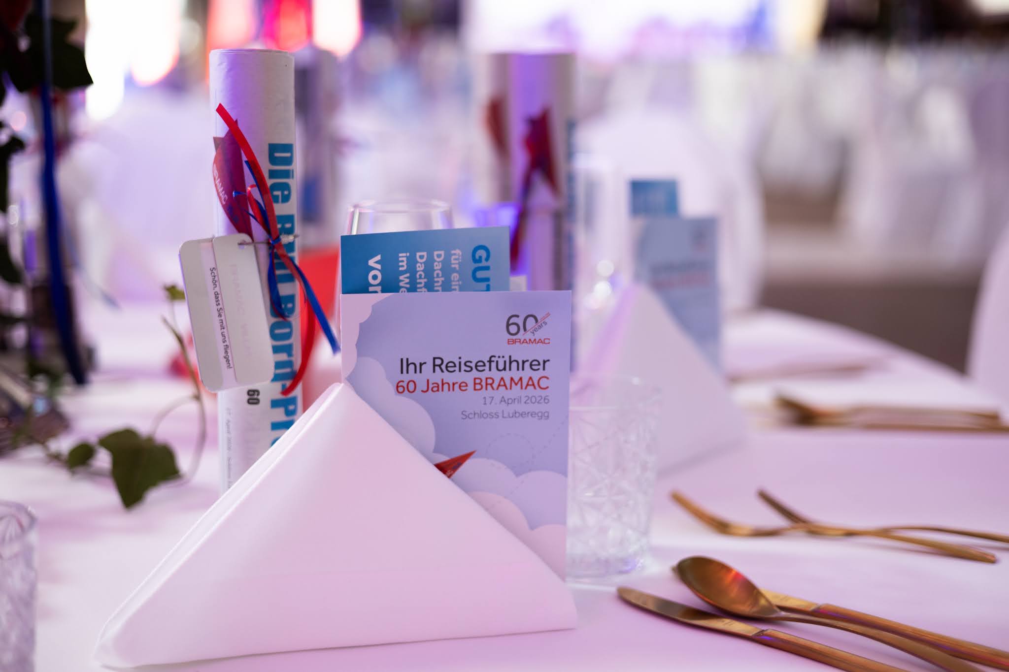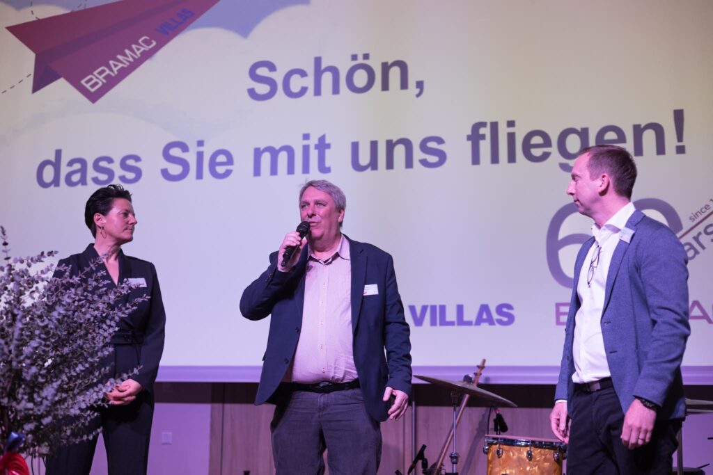 Die Jubiläumsfeier im Schloss Luberegg war als Reise konzipiert, die durch die Geschichte und in die Zukunft des Unternehmens führte. Schon beim Empfang wurden die Gäste mit Check-in, Boarding Pass und einer eigens gestalteten Bordzeitung begrüßt. Mit dieser Inszenierung wies man bewusst auf den familiären, kreativen und innovativen Geist von BMI Austria Bramac Villas hin: gemeinsam mit Kund*innen, Partner*innen und Mitarbeitenden unterwegs zu sein und neue Horizonte erkunden. Die Feier war von vielen Wiedersehen und geselligen Gesprächen geprägt. Dabei standen nicht nur Geschäftsbeziehungen im Vordergrund, sondern die Freude über oft jahrzehntelang gewachsene Verbindungen.